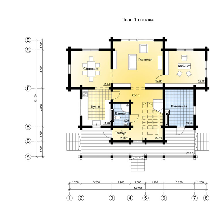 Балки – сухие, строганные, обработанные огнебиозащитным составом в заводских условиях. Внутренние перегородки - клееный брус 120х185 - Кровля